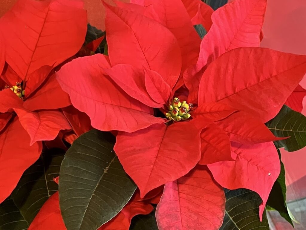 ポインセチアの開花時期は、12月~2月です。ポインセチアの花色は赤のほか、現在ではピンクや白、紫、複色のポインセチアもあります。